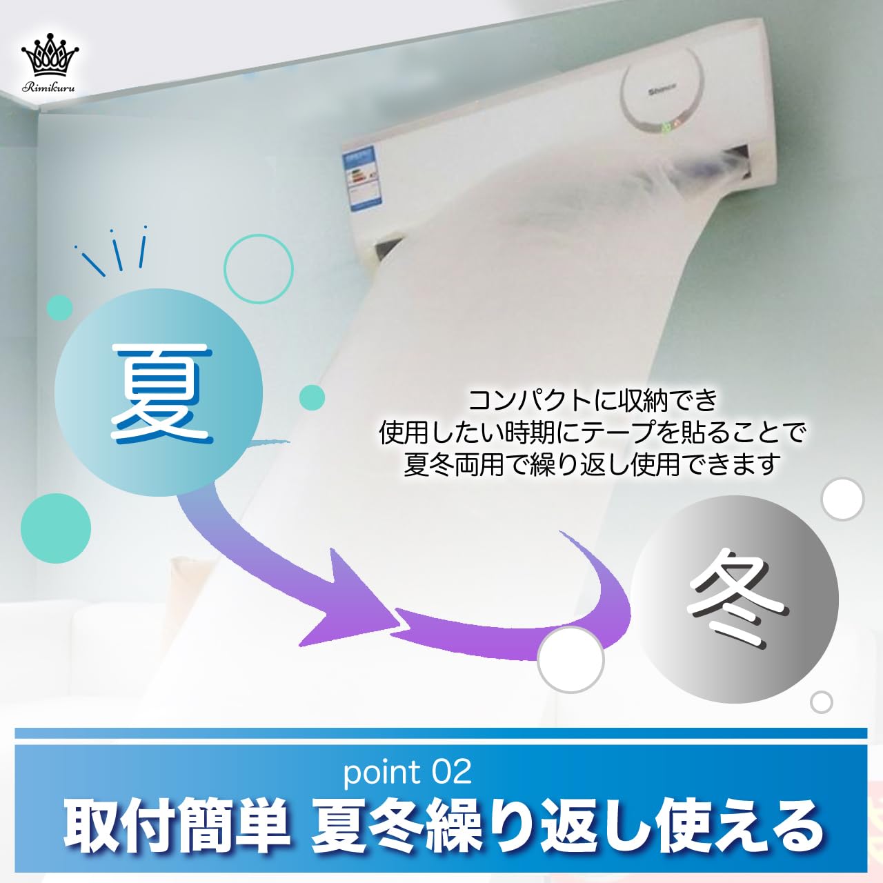 取付簡単 夏冬繰り返し使える:エアコンの送風口に付属のテープで貼るだけで取り付け・取り外しが簡単にできる空調ホースです。また取り外しの時にテープをはがしても跡が残らないので、エアコンを傷つける心配もありません。使用しない時期は丸めたり折りたたんだりコンパクトに収納でき、使用したい時期にテープを貼ることで夏冬両用で繰り返し使用できます。