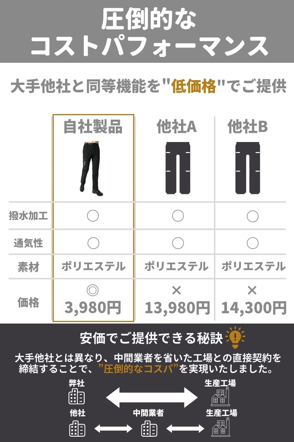 ?【圧倒的なコストパフォーマンス】なにかと高くなりがちなアウトドアアイテムですが、当社は中間業者を介さない直接仕入れを実現しているため、他社を上回る圧倒的なコストパフォーマンスを実現しています。