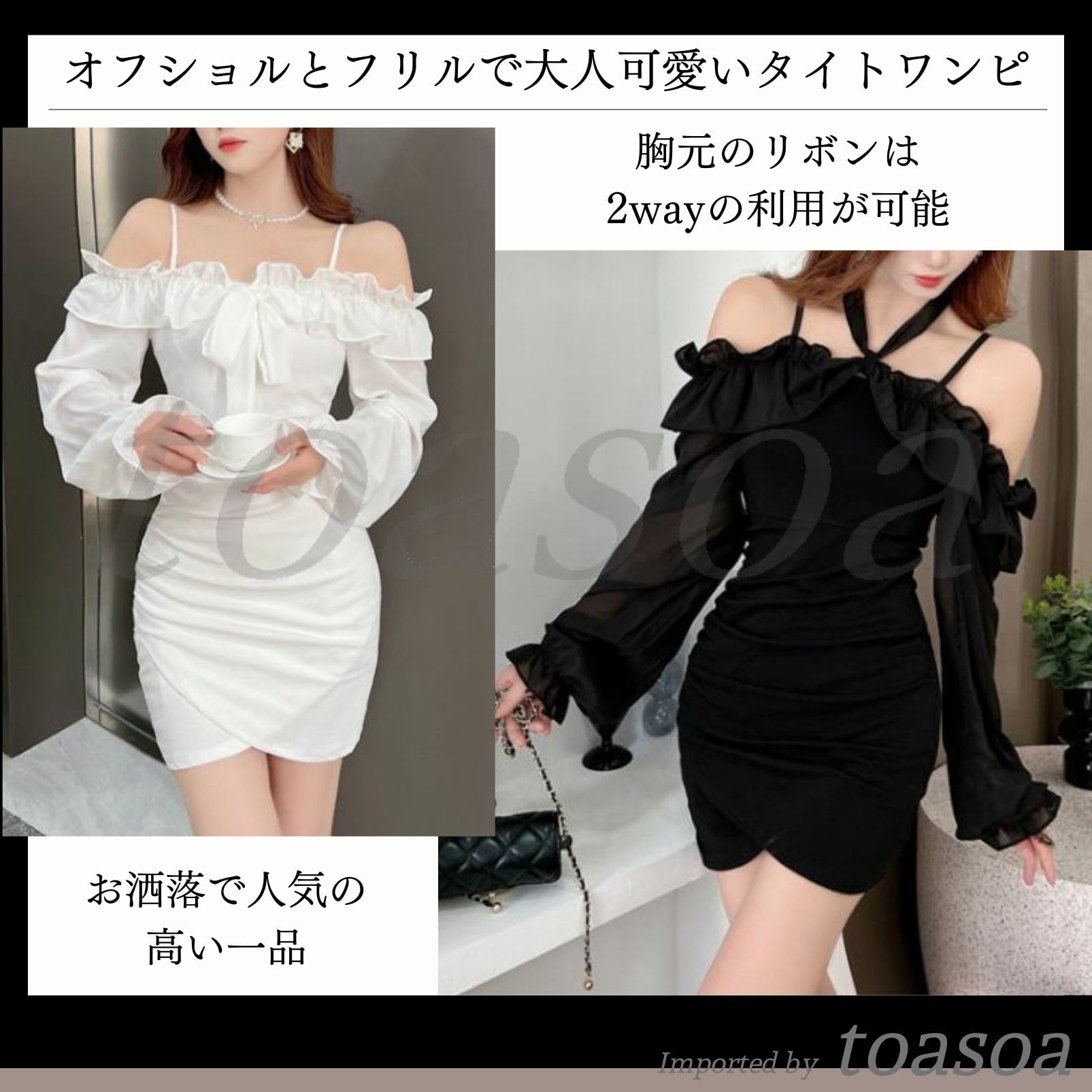 [トーアソーア] オフショルダー ワンピース セクシー レディース ミニ タイト フリル 2way ホルターネック リボン