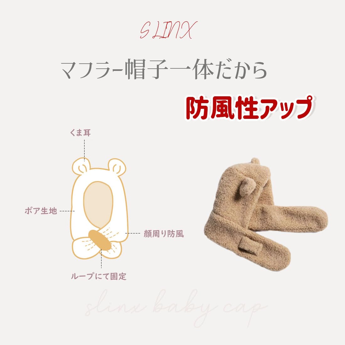 [SLINX] ベビー 新生児 帽子 動物 耳 くま くま耳 可愛い マフラー あったか 防寒 子供用 男の子 女の子 キッズ 赤ちゃん 春 秋 冬 0〜2歳 子ども もこもこ フリーサイズ DM08