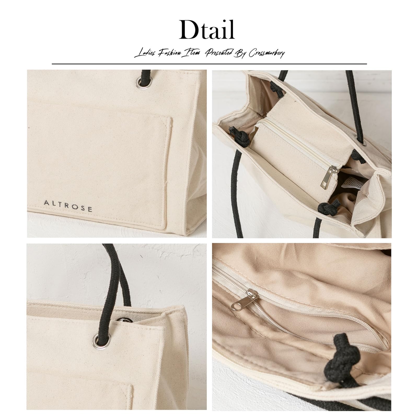 [クロスマーベリー] キャンバストートバッグ ファスナー付き 軽量 小さめ ハンドバッグ 手提げかばん 大人 R39