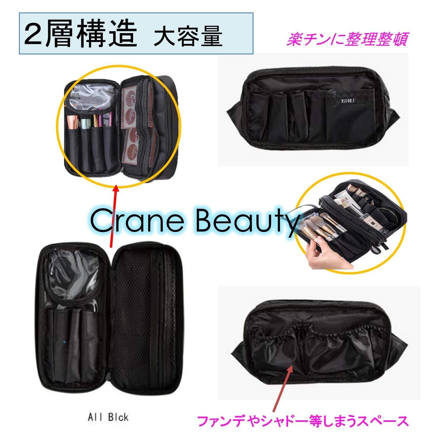 【Crane Beauty】化粧ポーチ メイクポーチ 大容量 コンパクト ブラシ入れ付き コスメポーチ 仕切り 機能的 二層 小物いれ ポーチ 化粧品収納 旅行 持ち運び 携帯用 トラベル ギフト 贈り物 s-2 (中, 黒)