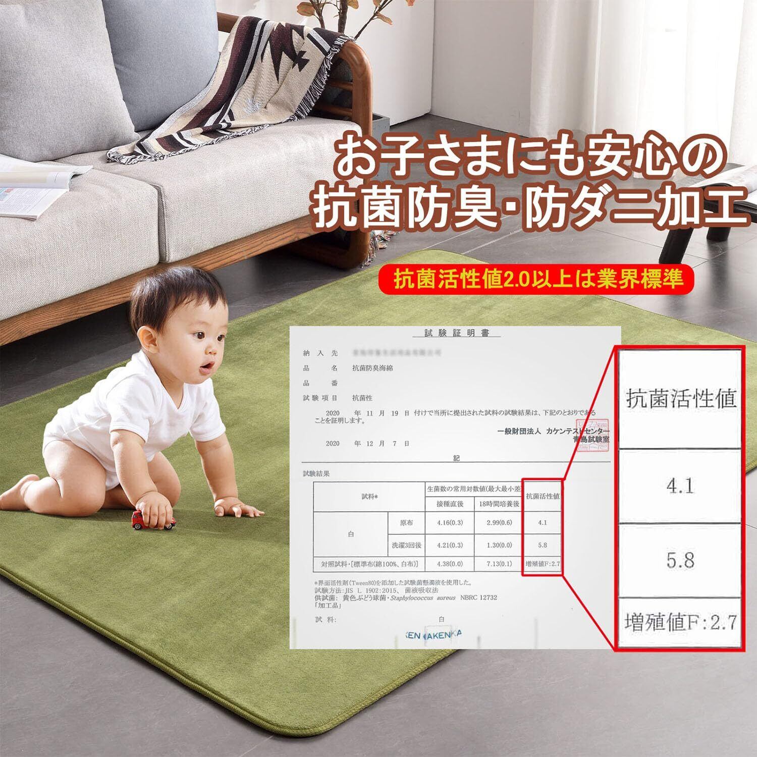 aicomri カーペット ラグ ラグマット 1.5畳 洗える 厚约7mm 130×185cm じゅうたん 滑り止め ホットカーペット対応 カーペット オールシーズン 抗菌防臭 防ダニ 撥水加工 床暖房対応 フランネル らぐまっと 無地・グリーン
