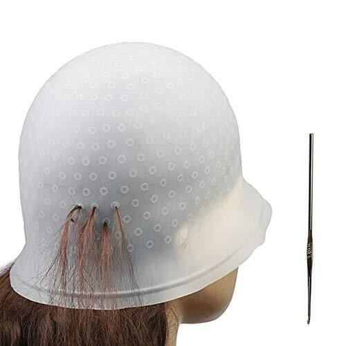 メッシュキャップ ヘアカラー 毛染め ハイライトキャップ ブリーチ 髪 シリコン素材 カラーリング 不要な染めを避ける 洗って使える(穴あけセルフタイプ) 白