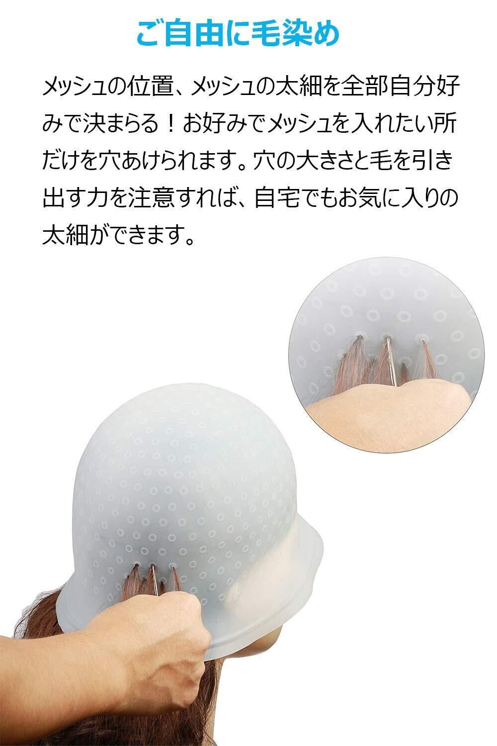 【安心・再利用可能】キャップを被ることにより、顔の肌を刺激の強いカラー剤などから保護できます。穴の数が多くて、頭全体を細かくメッシュをできます。