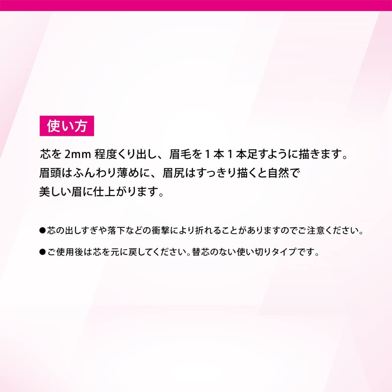 汗・水に強く長時間キープするウォータープルーフ。眉毛を1本1本描ける1.5mmの極細芯、削らずに使えるくりだしタイプ。美しい発色でなめらかな描き心地。ダークブラウン。