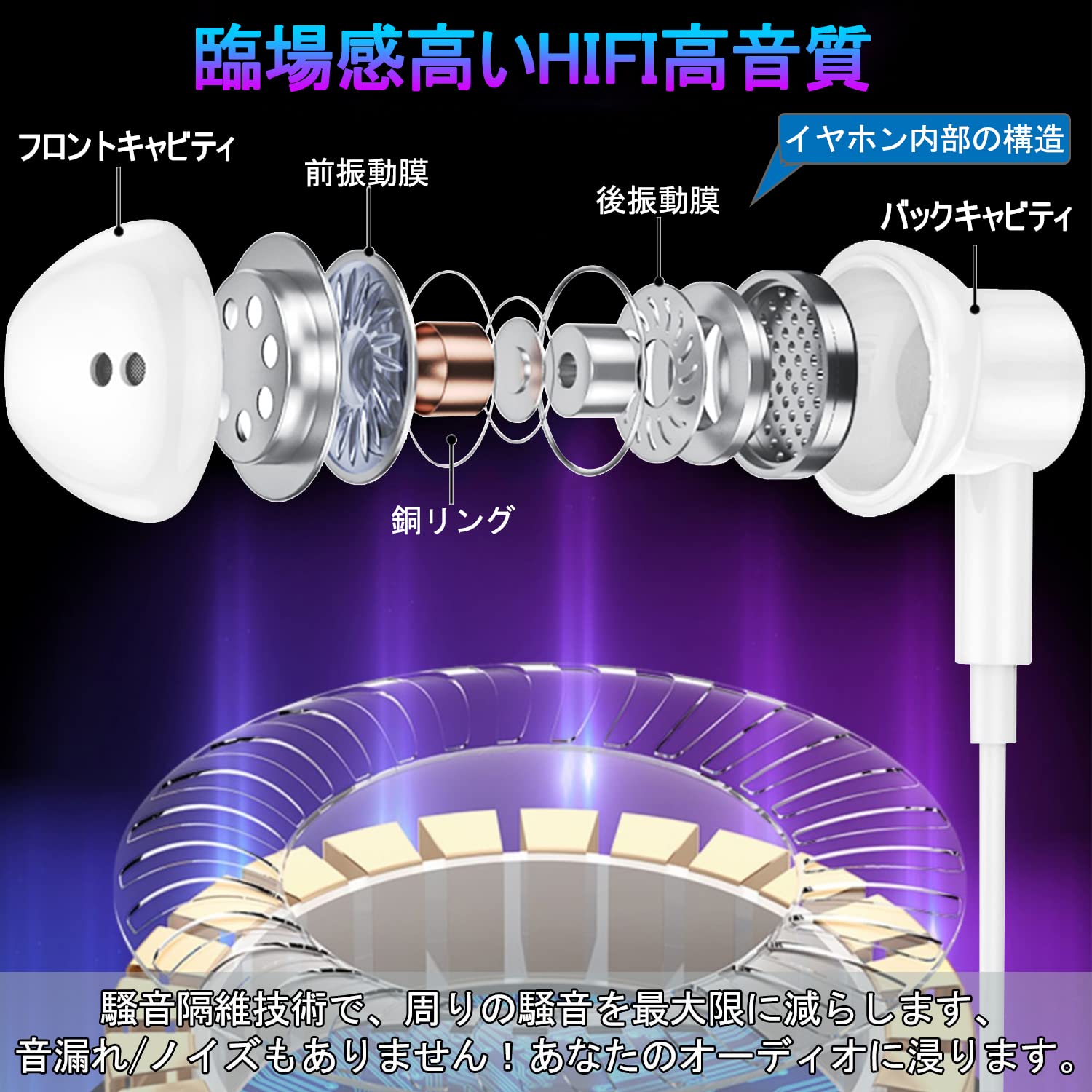 ?【没入感ある音質】有線 イヤホンはアップグレードチップを搭載し、最新改良の高品質スピーカーが搭載されており、複合鼓膜ダイナミックドライバーを備えており、イヤホンは内蔵の前後の振動膜アップグレードし、HiFi高音質に対応し、音質劣化・遅延などを効果良く軽減し、純音信号がそのまま高速に伝送し、高音から重低音まで歪みのなく迫力な音質を伝達します。まるでコンサート会場のような雰囲気です。