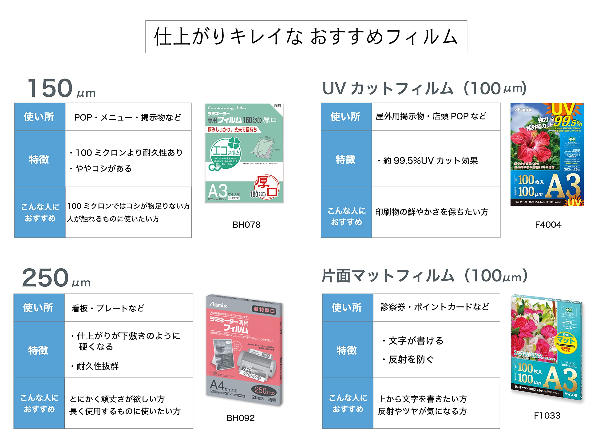 ゴミやほこりがつきにくいラミネーター専用フィルム