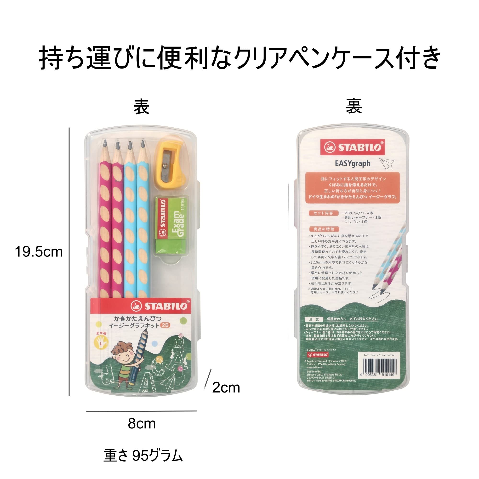 STABILO スタビロ かきかた学習鉛筆 イージーグラフ スターターセット 2B 2色各2本 左手用 三角 持ち方 矯正 名前入り 子供 幼児 男の子 女の子 4本 LP0076 ブルー・ピンク