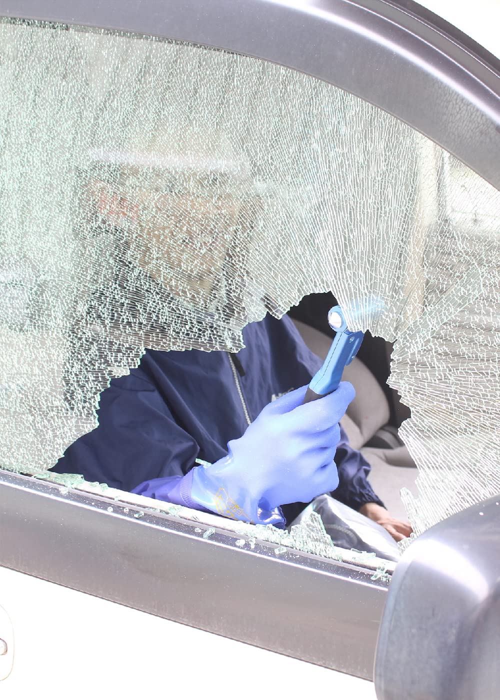 ゲリラ豪雨や事故などで車に閉じ込められる危険性を回避。簡単には割れない車のガラスもこのハンマー使用で簡単に粉砕。緊急時の脱出のためのガラス割りハンマーです。シートベルトカッターもついているので、シートベルトを切る事も可能です。