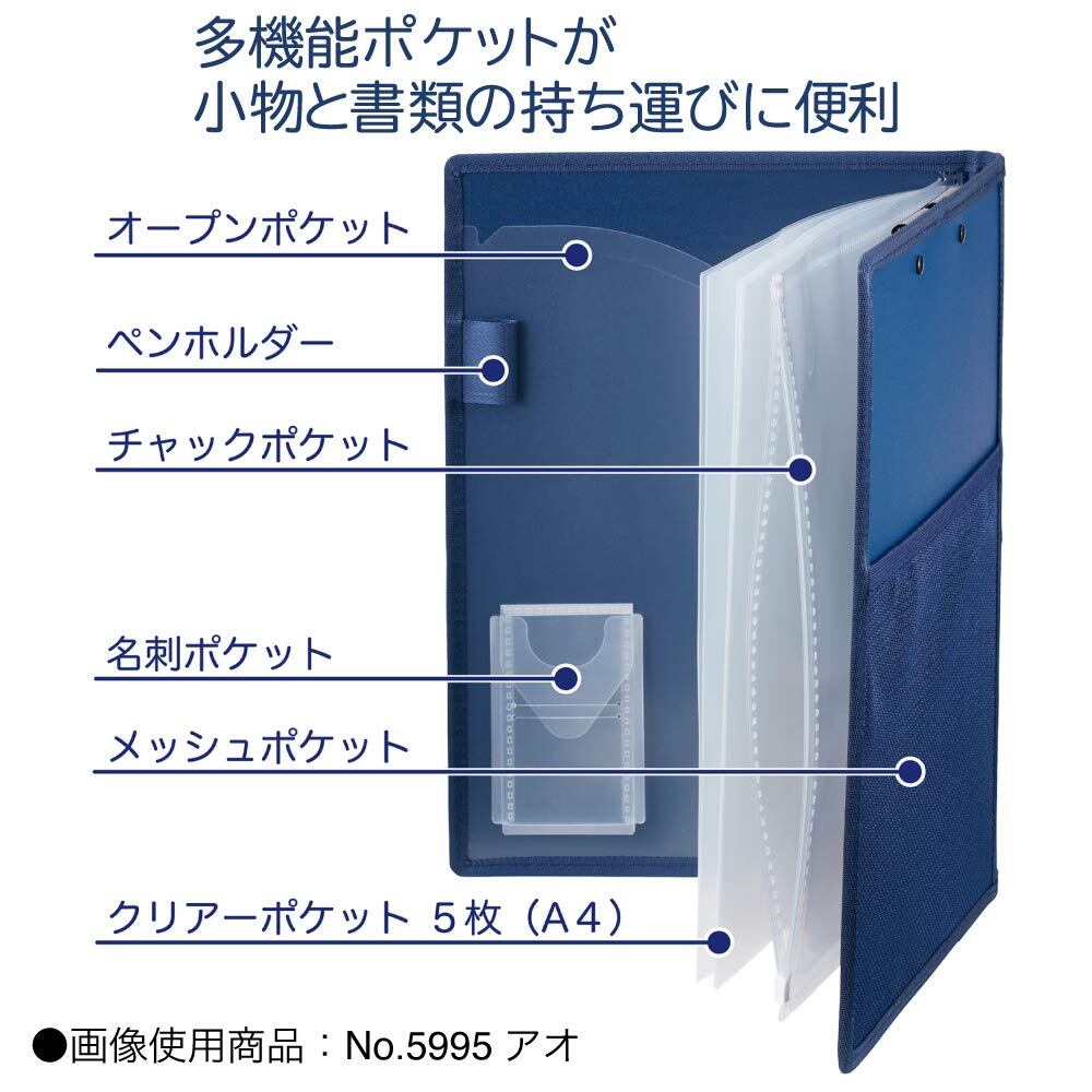 「オールイン クリップボード(カバー付き)」は、メッシュポケットやペンホルダーに加え、便利な4種類のポケットがついていて収納力が充実。
