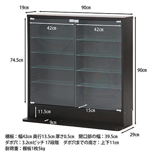 不二貿易 コレクションケース フィギュアケース 5段 幅90×奥行29×高さ90cm ブラック 浅型 可動棚 組立商品 ロータイプ 96070
