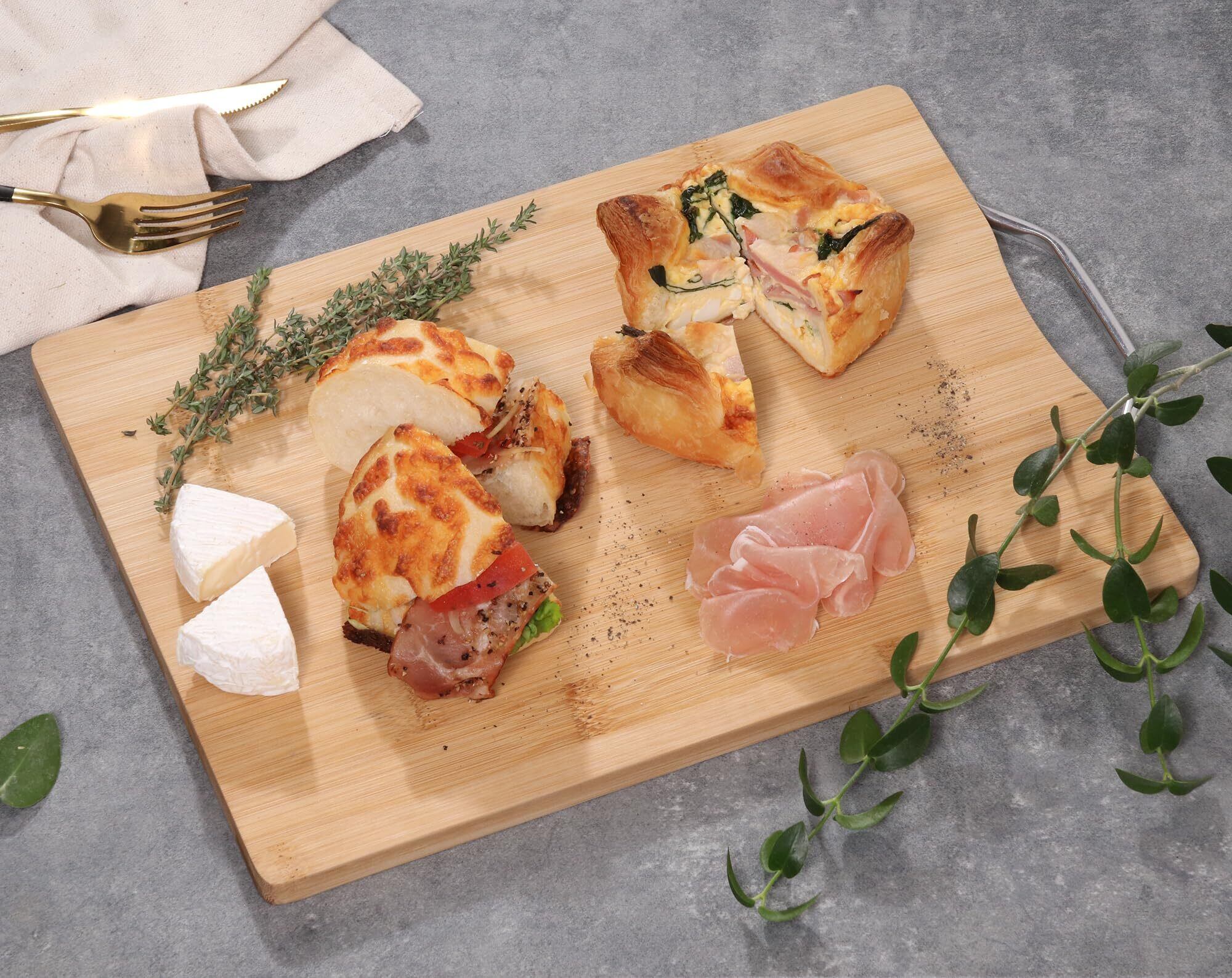 アルミ取っ手がかわいい食材を切るのに充分なサイズ感のカッティングボードです。