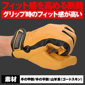 素材にしなやかなゴートスキン(山羊皮)を採用することで、手になじみやすく、ハンドル操作がしやすい仕様です。