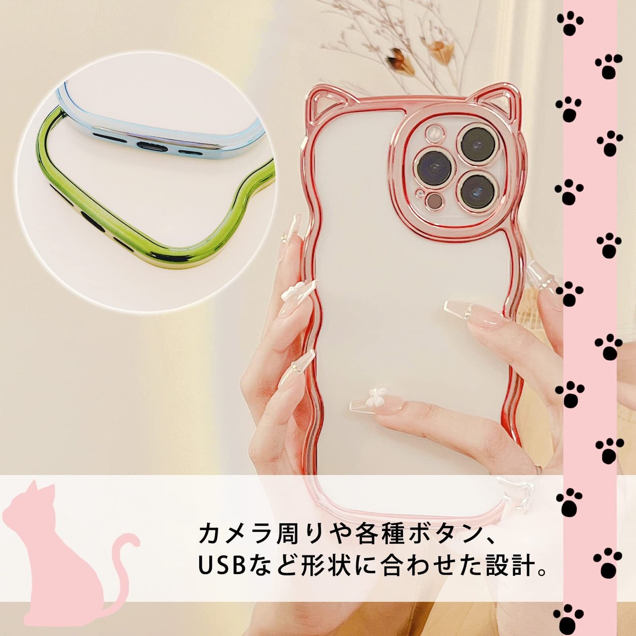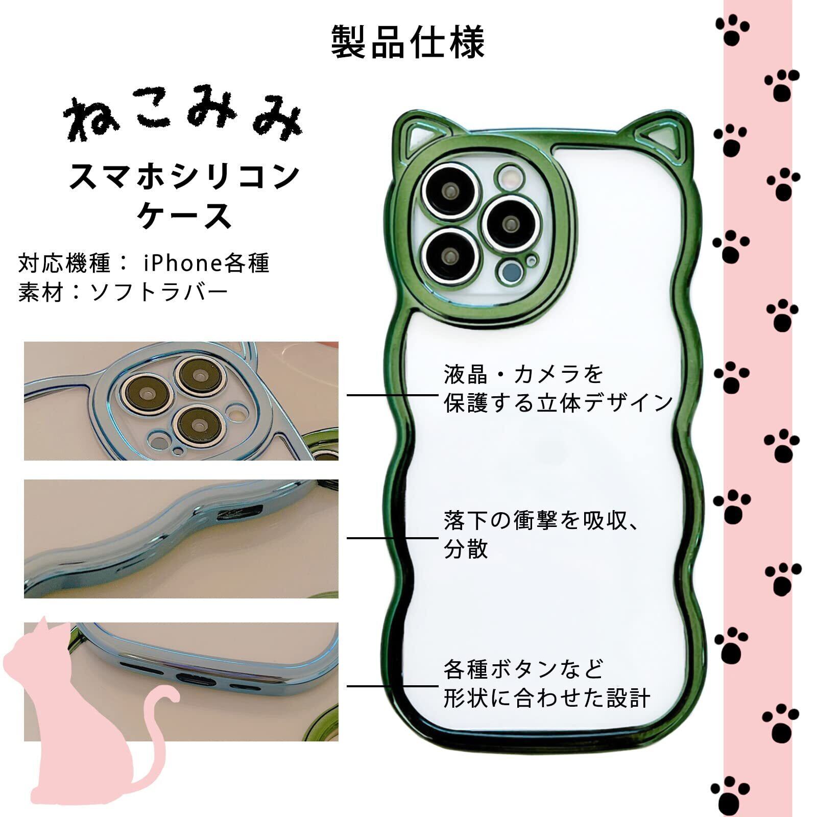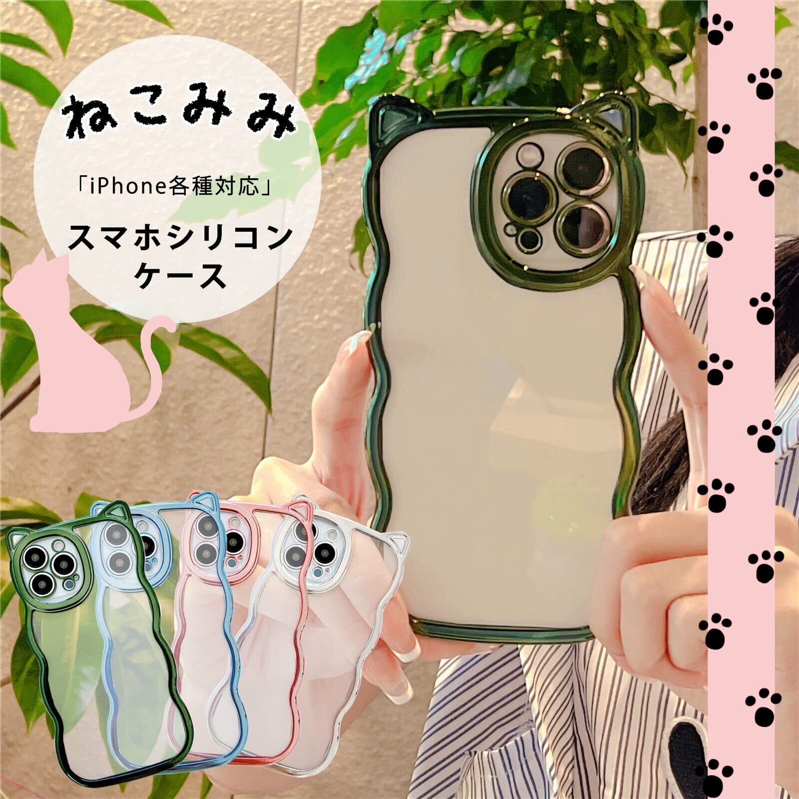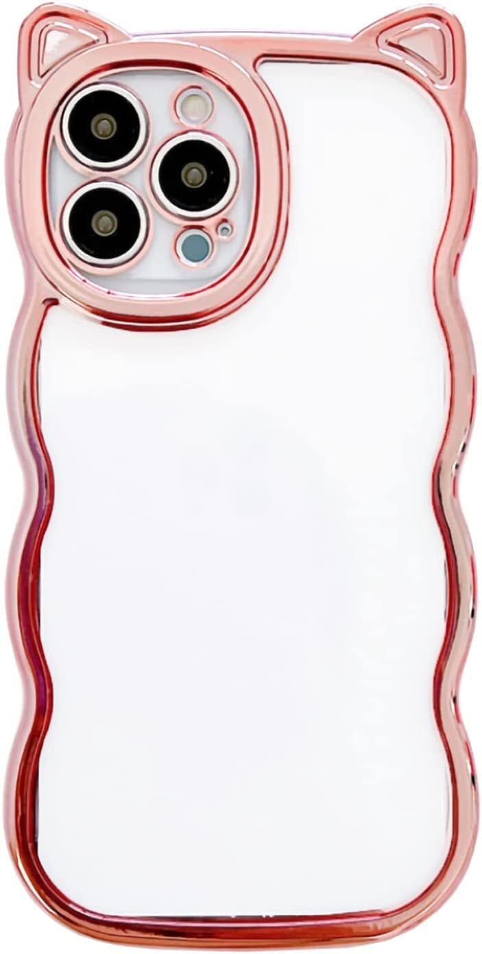 【LuceTerra】 iPhoneクリアケース 猫耳 スマホケース 可愛い 韓国 透明 (pink, iPhone16)