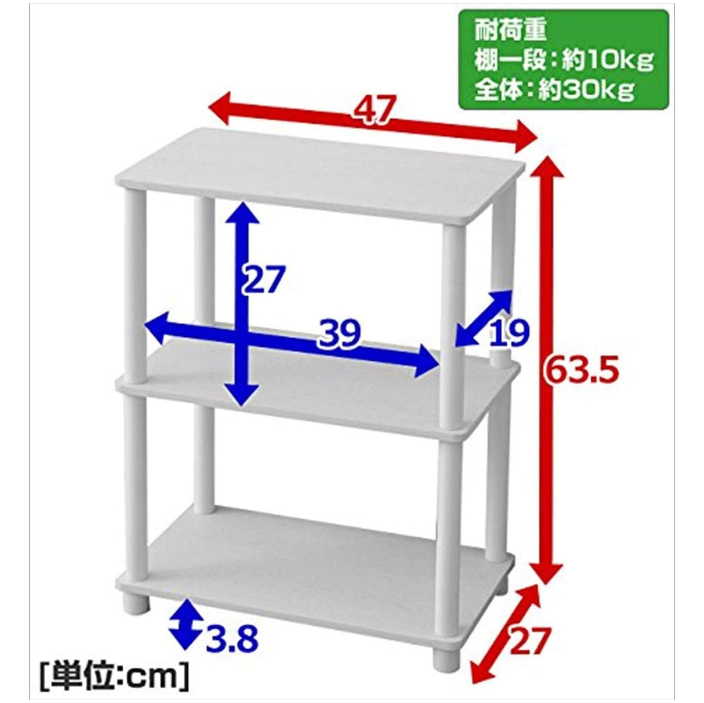 山善(YAMAZEN) ラック オープンシェルフ 幅47×奥行27×高さ63.5cm 3段 ミニ 角が丸い 組立かんたん オーク ISR-3IN(OAK3/WH)