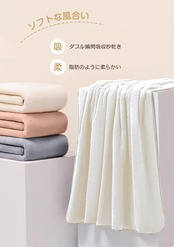 【優れた吸水性と速乾性】綿素材より優れた吸水性と速乾性。 マイクロファイバー素材の表面には無数の隙間があり、その隙間に大量の水を素早く吸収します。 髪や肌を軽く拭くだけで水分を吸収し、ホコリがつきにくいです。 バスタオルの隙間により、隙間に溜まった水分を空気が素早く拡散させるので、乾燥が早く、無菌で衛生的な状態を保つことができます。 梅雨や湿気の多い季節でも清潔を保ちます。 乾きにくい洗濯物にも快適にお使いいただけます。 室内干しも可能です。