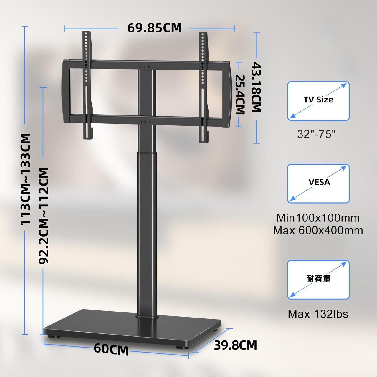 【取り付け可能なテレビ】対応インチ:32~75インチ以内。対応重量:40kg以内。対応VESA(テレビ背面のネジ穴間の距離):100MMx100MMから400MMx600MMまで。※ご注意:ご購入前、テレビの重量、サイズ及びVESA規格をご確認ください。