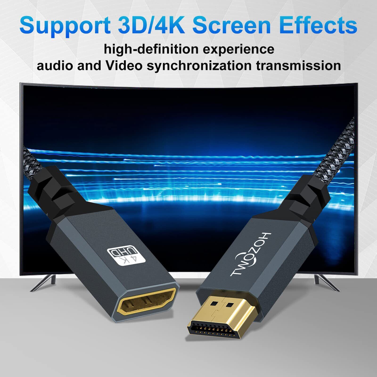 Twozoh HDMI延長ケーブル HDMIオス-メスHDMIコード ナイロン編組HDMIエクステンダー HDMI 2.0ケーブルアダプター 4K@60Hz 3D HDR (0.3M) 対応