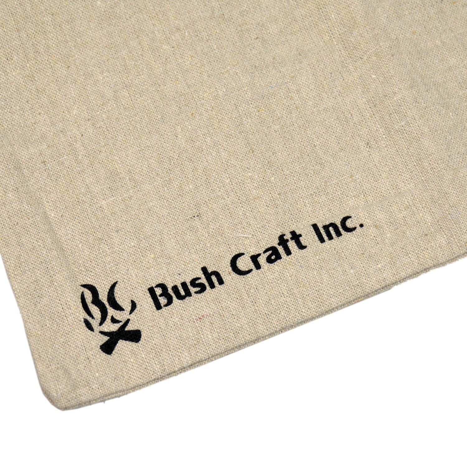 Bush Craft Inc.ブランドの、リネン(麻)袋。 小物入れとして最適な、麻のスタッフサック。 焚き火フライパンに標準付属するスタッフサックですが、フライパンに限らず食器などを入れるにも程よいサイズ。