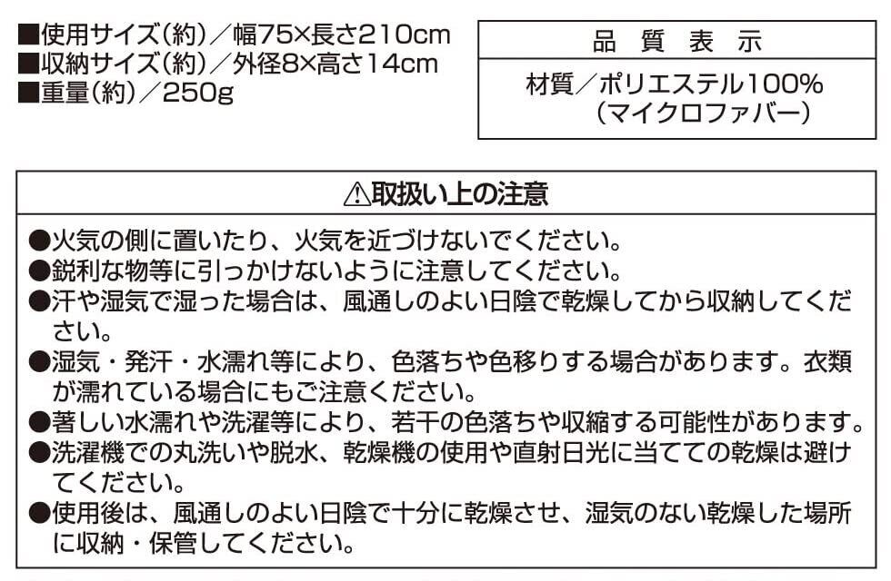 使用サイズ:(約)幅75×長さ210cm