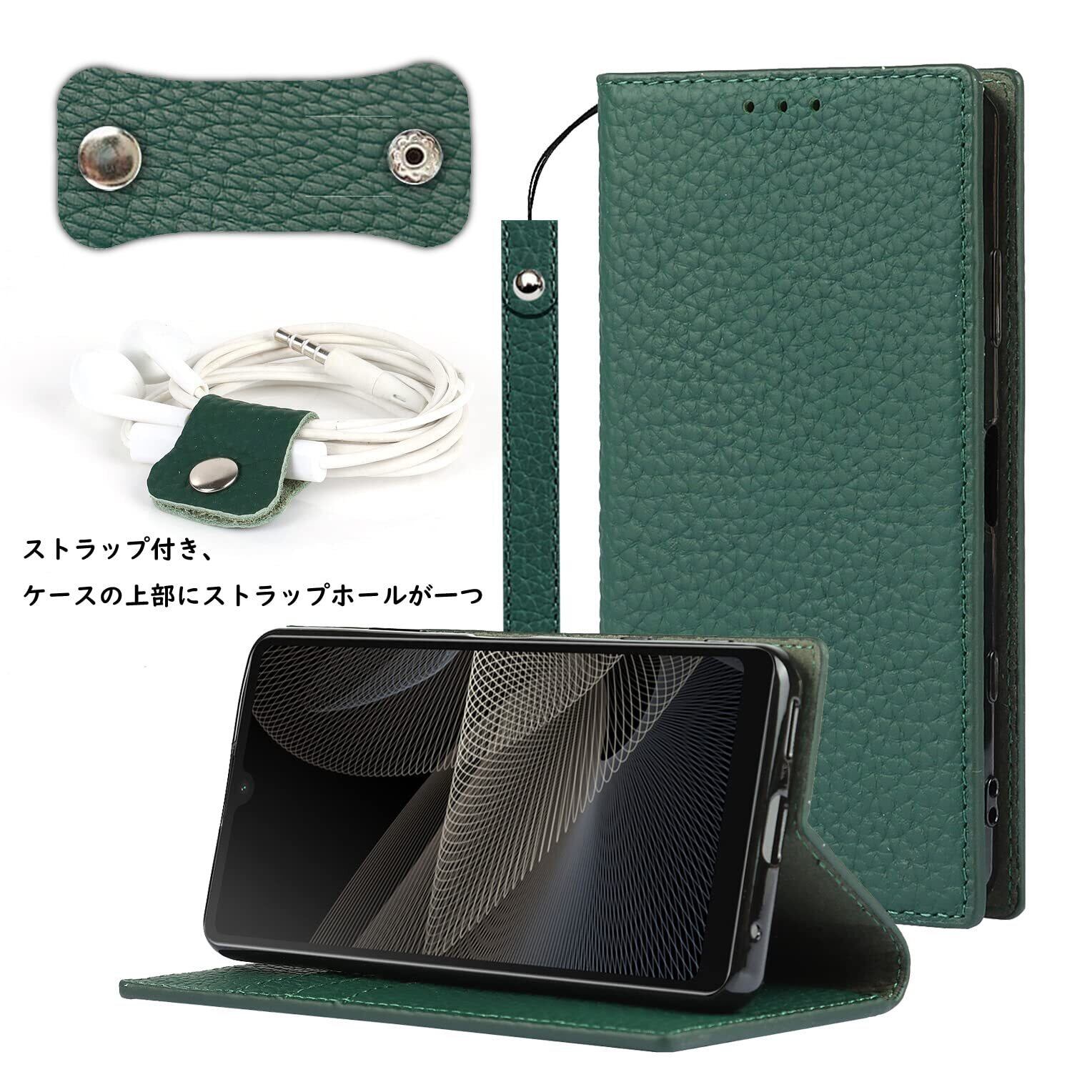 Havaya Xperia Ace II SO41B ケース Xperia Ace II ケース 手帳型 本革 カバー カード収納 docomo Xperia L5 au 耐衝撃 softbank SONY ソニー エースii 第2世代 レザー-ダークグリーン