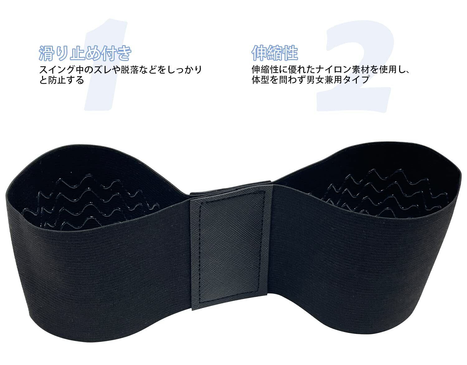 【スイング練習を簡単に】バンドに腕を通して、肘の上あたりに装着してスイングしてください。スイングする際に大きく振りかぶってしまいがちな人やスイング癖を直せます。正しいスイング軌道に導き、腕ではなく体でクラブを振る感覚を養うことできます。ゴルフ初心者~上級者にオススメ。