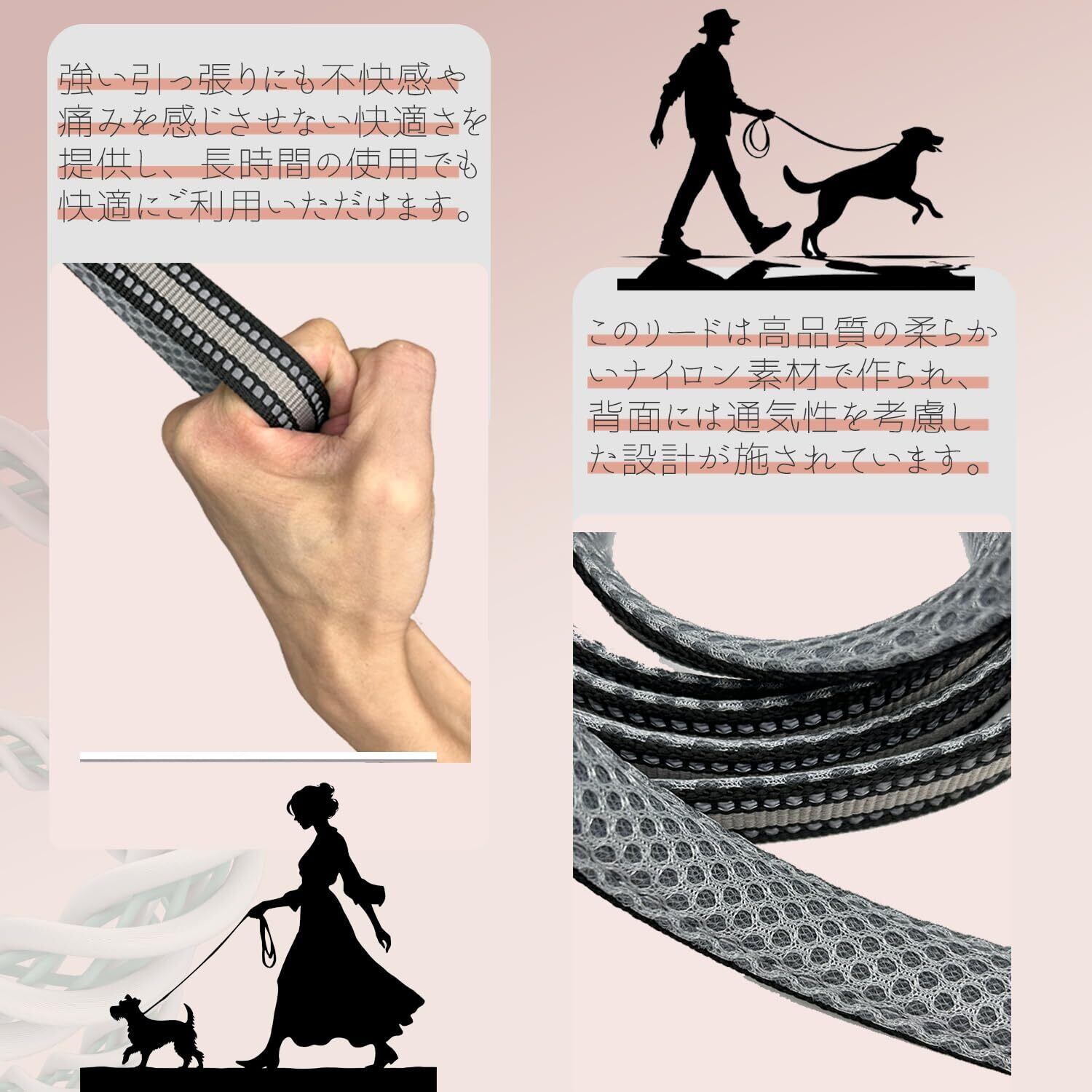 ハンドルの快適性: ハンドル部分はソフトメッシュ素材で作られており、長時間の使用でも手に優しいです。快適なグリップ感を提供し、犬の散歩がより楽しいものになります