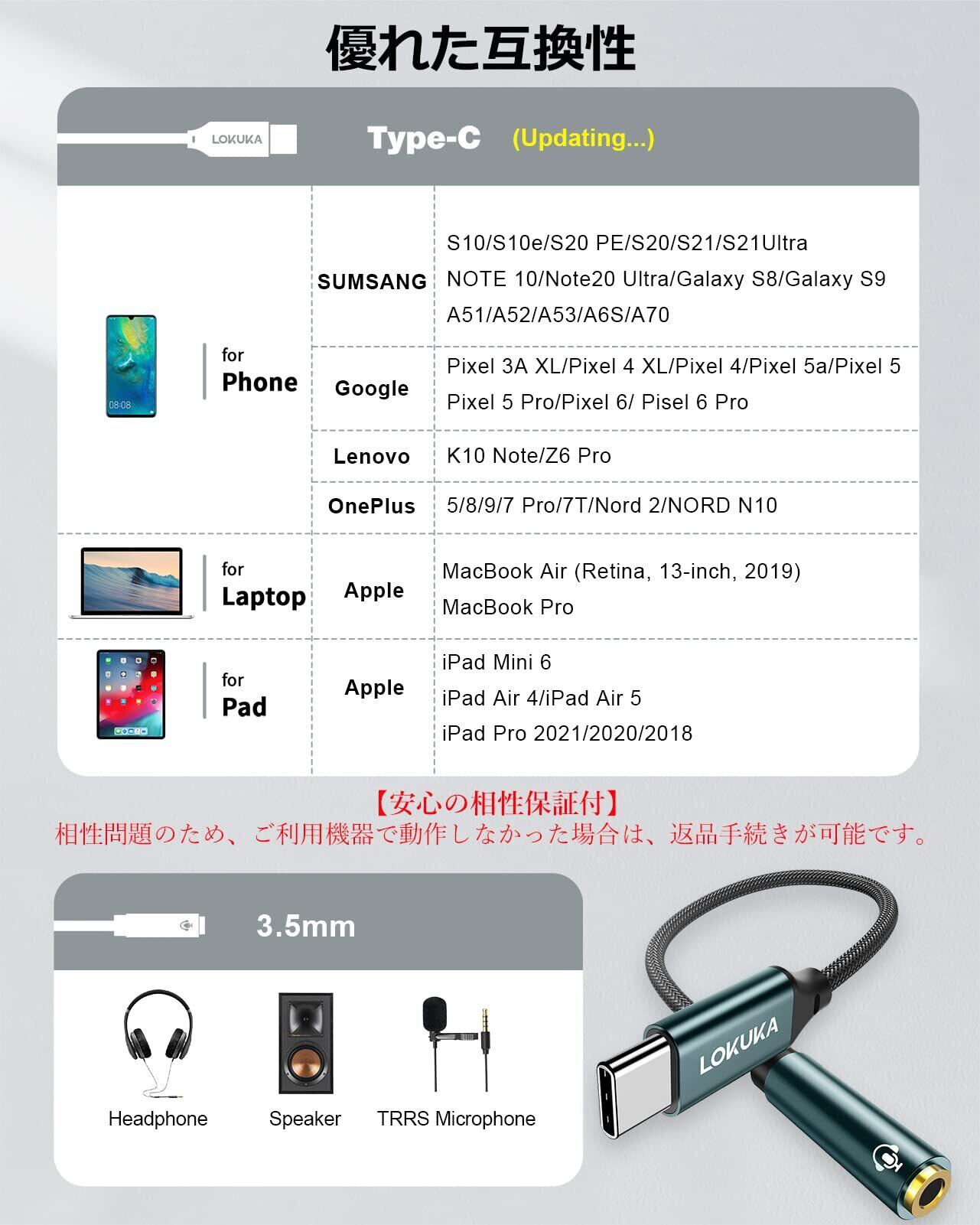 LOKUKA usb c イヤホンジャック DAC内蔵 ハイレゾ対応 高耐久 通話/音量調整/音楽再生対応 イヤホン変換アダプタ MacBook/iPad Pro/Air/Android/type c 機器用 20cm LC1