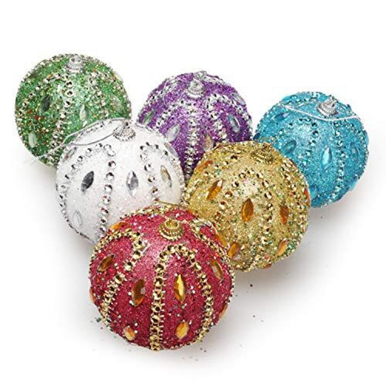 綺麗 ダイヤモンド クリスマス オーナメント ボール 6個セット 直径 8cm 北欧 インテリア ツリー 飾り 100%手作り クリスマス ツリー 装飾 スリング付き (ゴルード)
