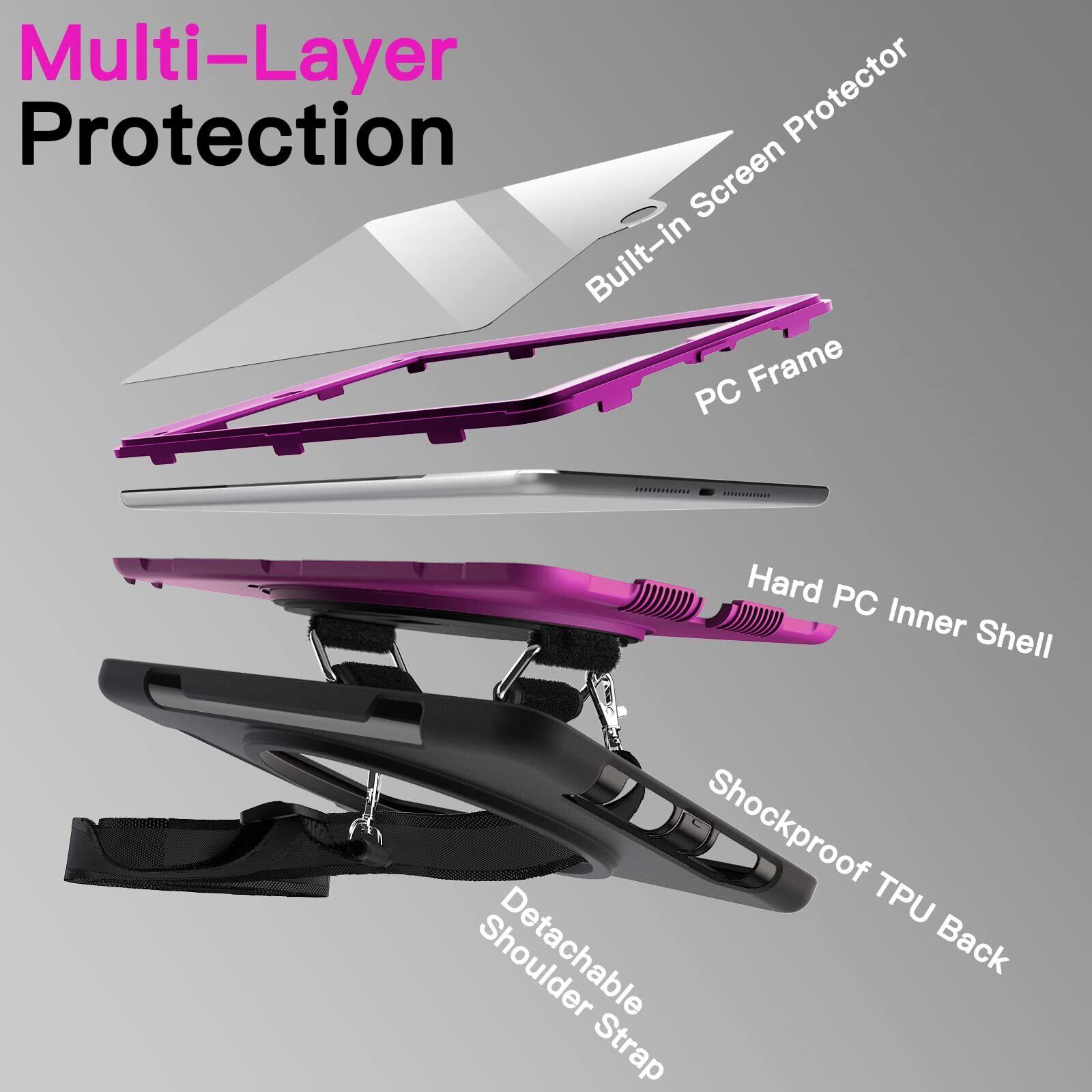 JEDirect iPad 9.7インチ ケース (第6/5世代、2018/2017モデル) 液晶保護フィルム付き 保護耐衝撃頑丈なタブレットカバー 360°回転ハンドストラップスタンド (プラム)
