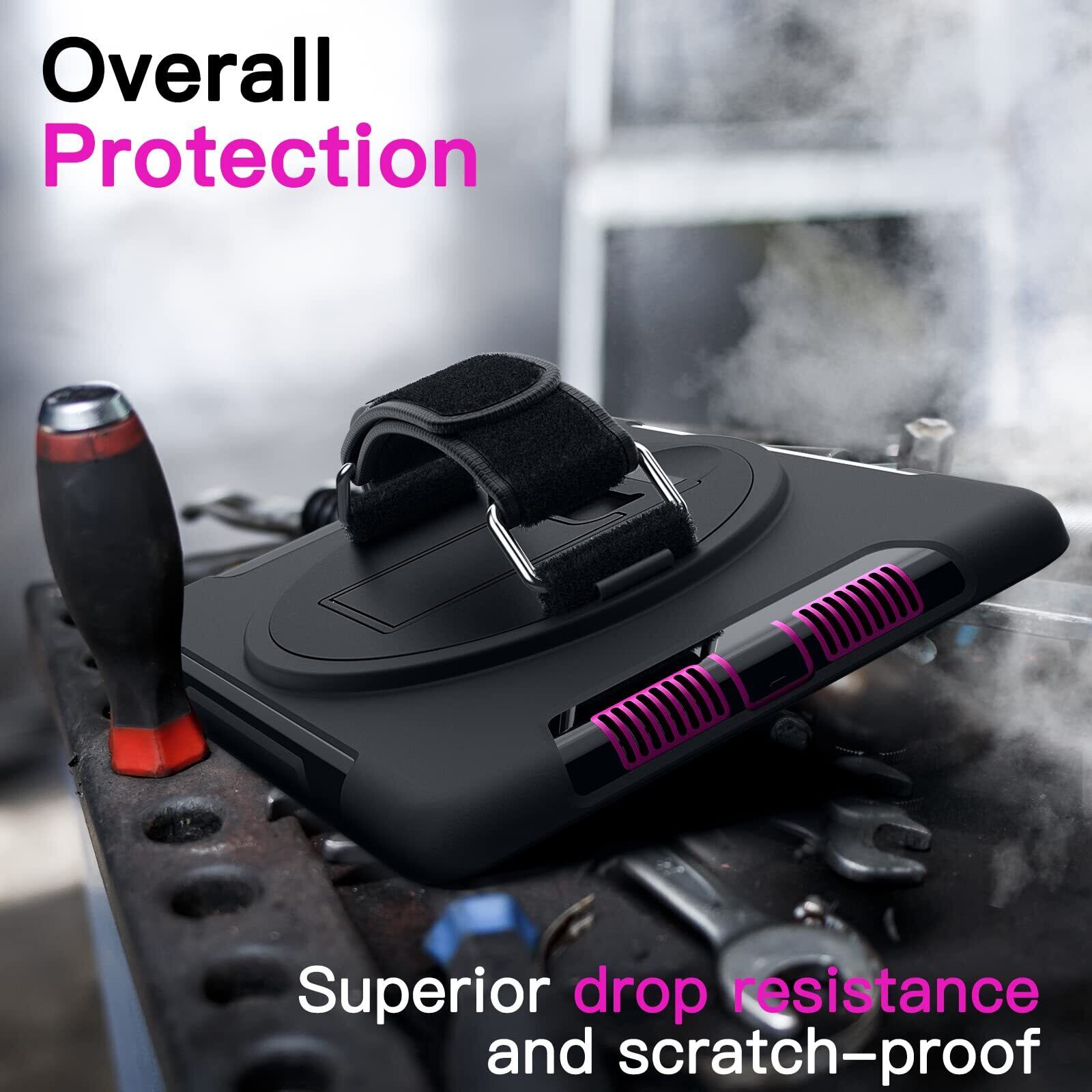 [360°回転キックスタンド & ハンドストラップ] 複数の角度でiPadを簡単にサポートします。さらに、柔らかいハンドストラップにより、iPad をしっかりと快適に保持し、偶発的な落下を防ぎます。お子様は iPaを簡単かつ安全に使って、勉強したり映画を見たりできます