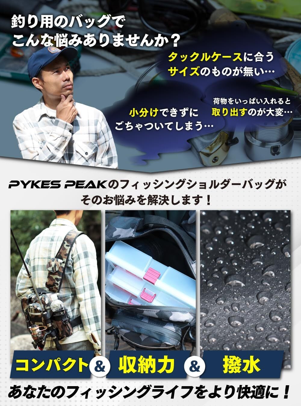 PYKES PEAK (パイクスピーク) 釣り バッグ フィッシングバッグ タックルバッグ ランガンバッグ 2サイズ 5色 防水ジッパー 大容量 カラビナ6個 フィッシングショルダーバッグ Mサイズ (カモグリーン)