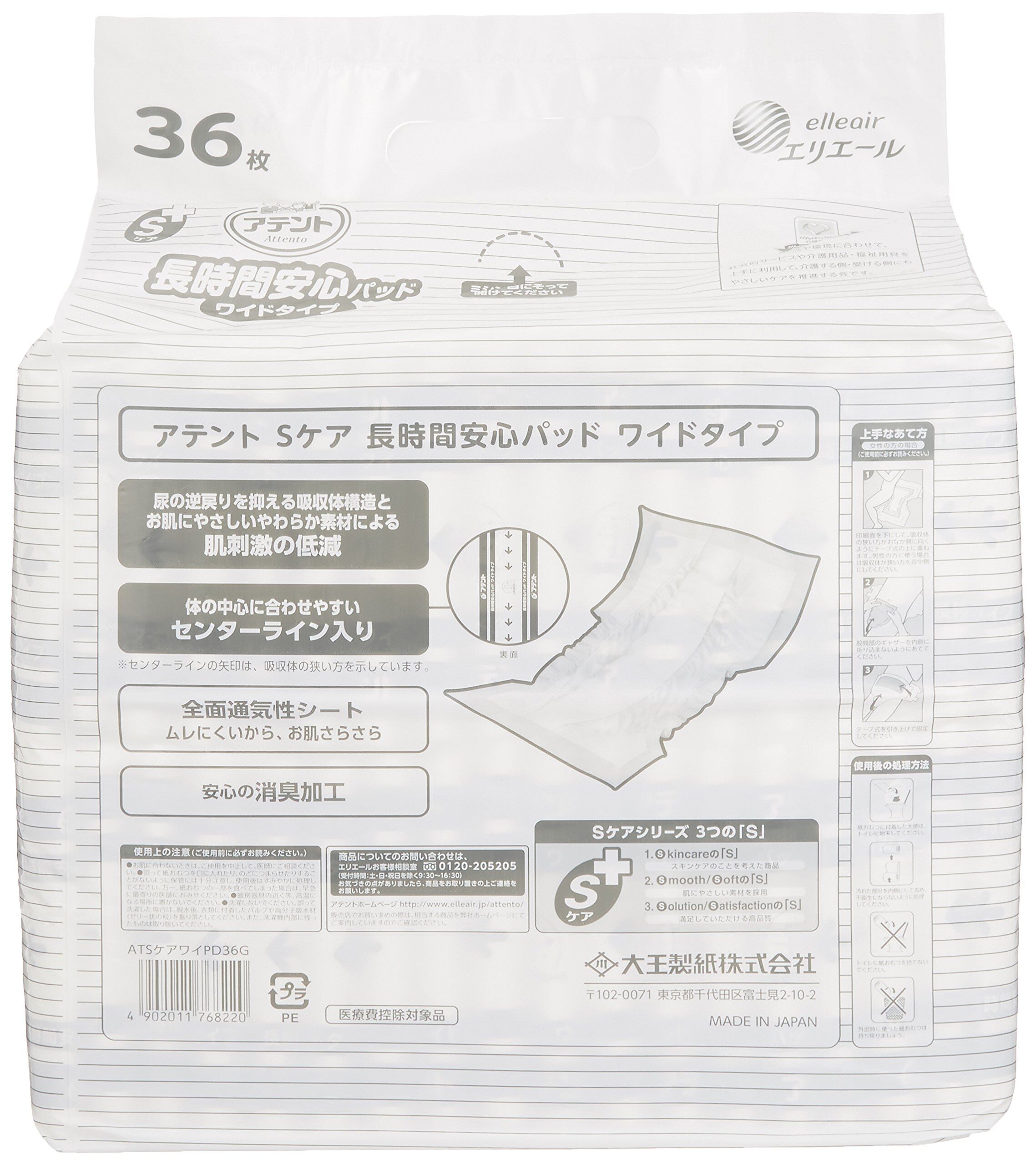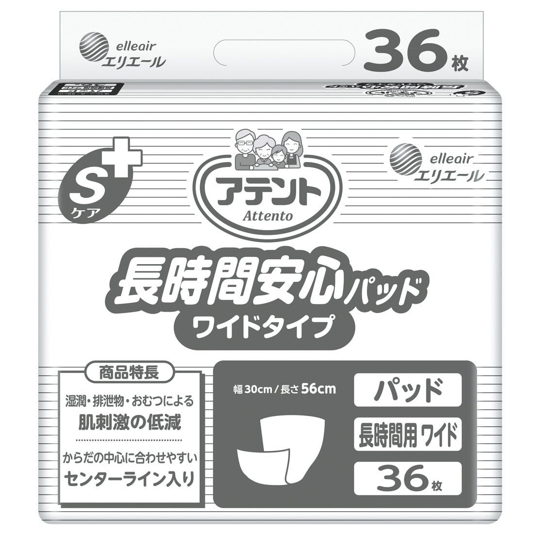 アテント Sケア 長時間安心パッド ワイドタイプ 36枚 30×56cm テープ式用 【寝て過ごす事が多い方】【病院・施設用】