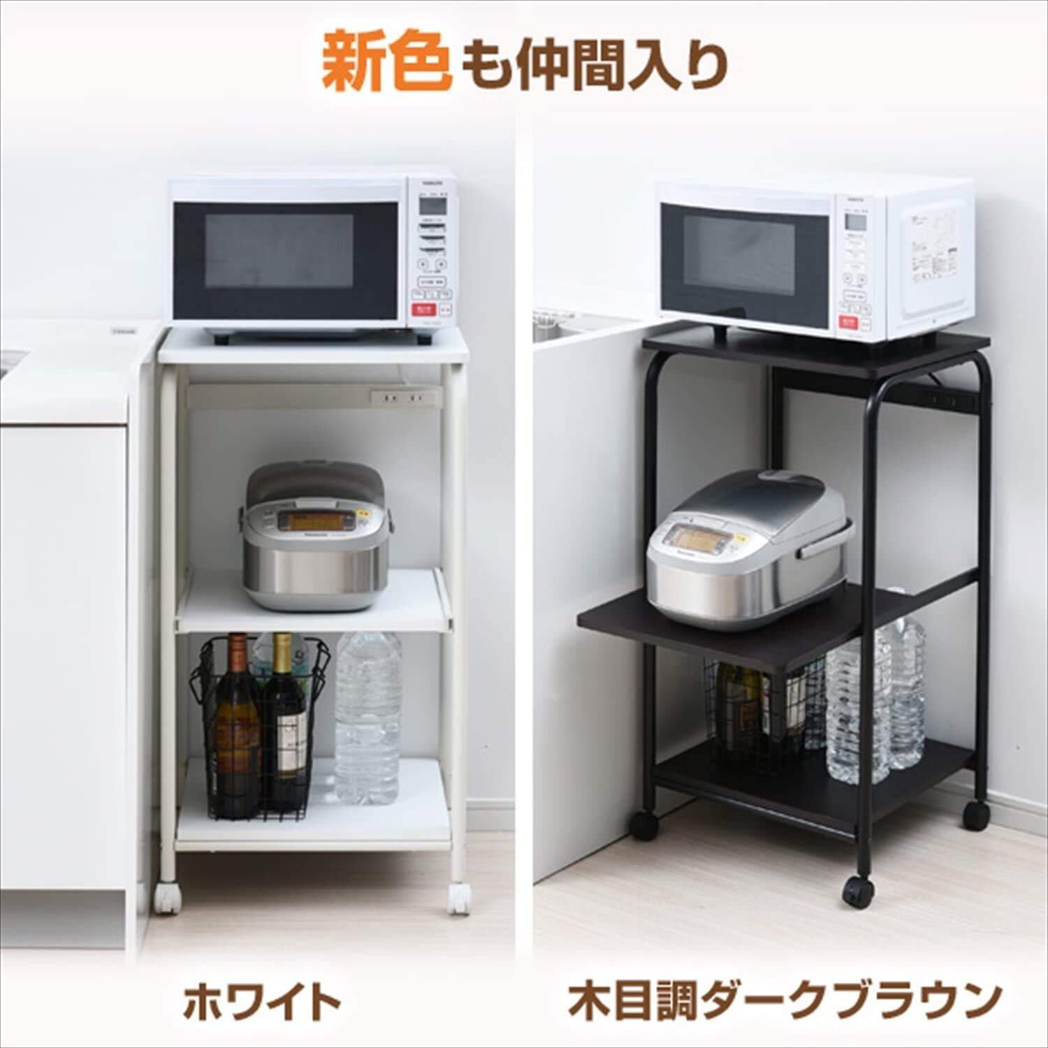山善(YAMAZEN) レンジラック 幅48×奥行41.5×高さ89cm スライド棚 2口コンセント ストッパー付きキャスター レンジ台 ラック キッチンラック 組立品 ダークブラウン/マットブラック GRW-41R(DBR/MBK)