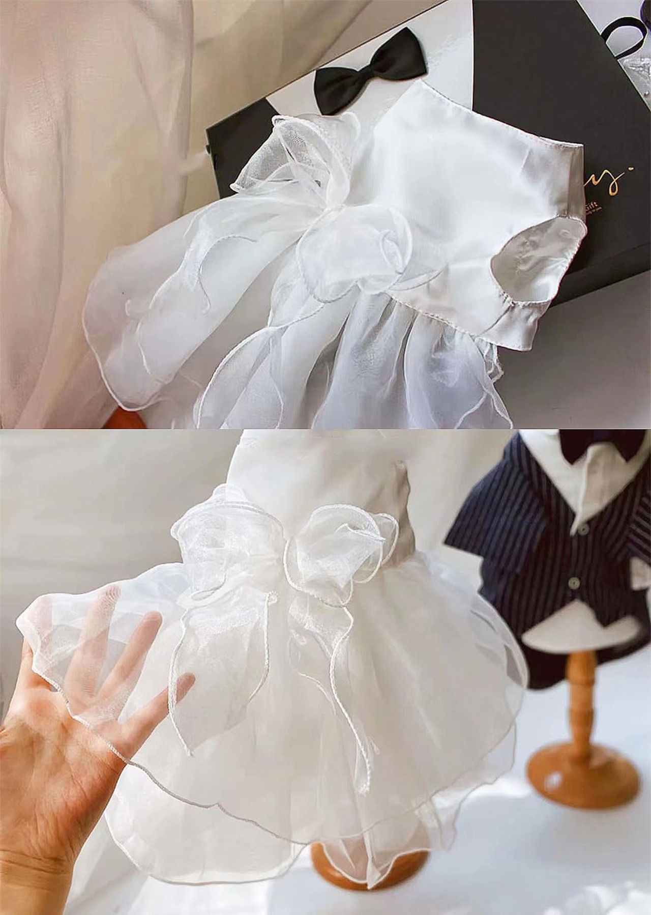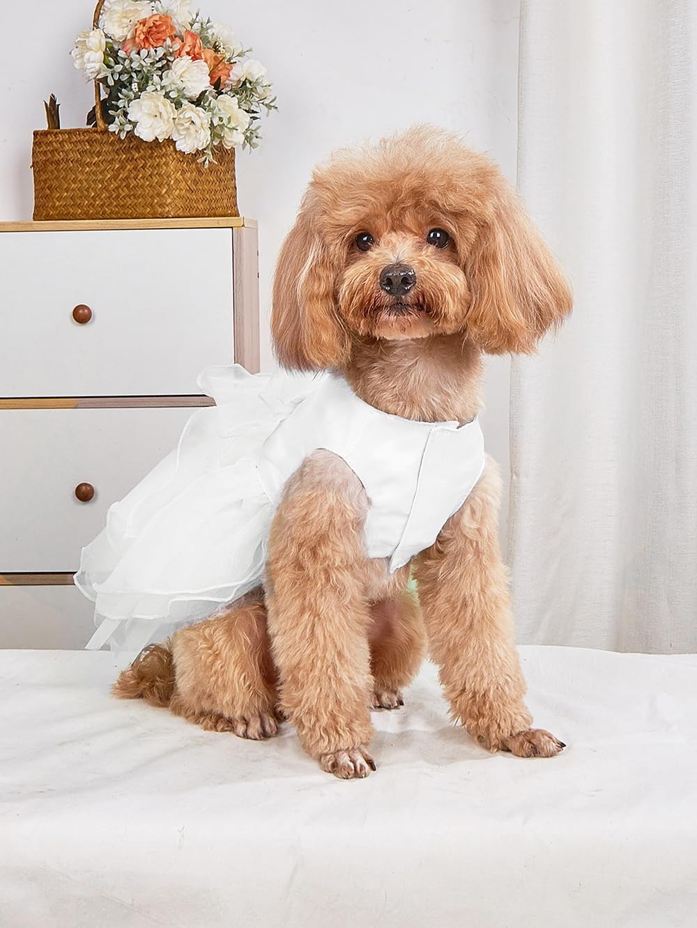 YBGGJO 犬 ウエディングドレス ペットのドレス ドッグウェア 手作り犬服 パーティードレス ワンピース 上品 華やか お姫様 猫 小型犬 結婚式 お祝い 記念パーティー 記念撮影 (ホワイト XL)