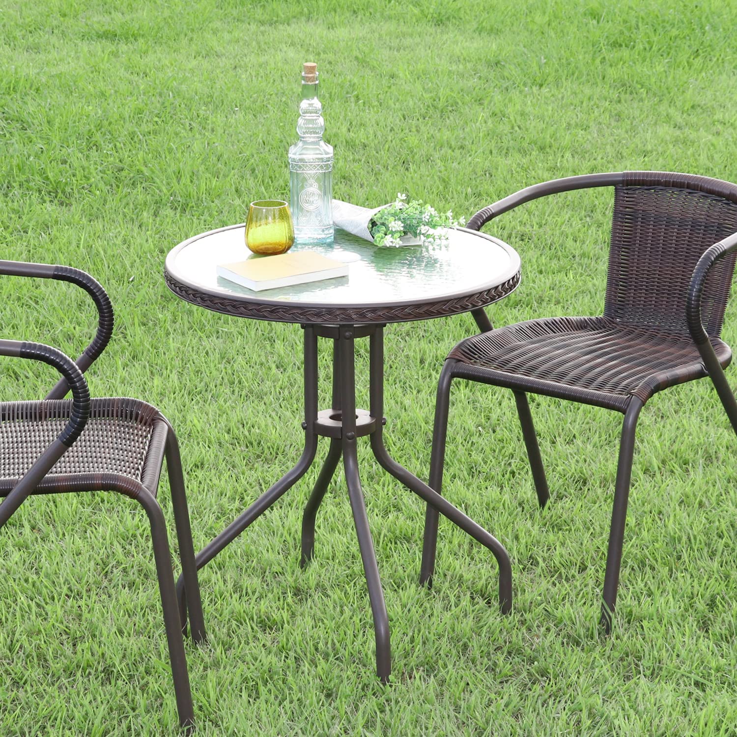不二貿易 ガラステーブル 2 幅60×奥行60×高さ70㎝ ブラウン ガーデン パラソル穴付 37292
