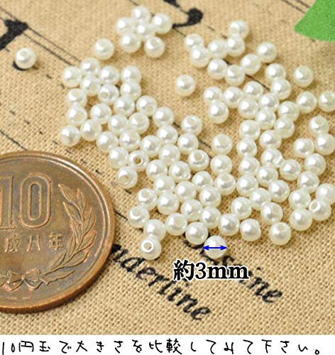 MYmama プラスチック パール風 ビーズ 100粒 3mm パールビーズ ホワイト パール 穴あり