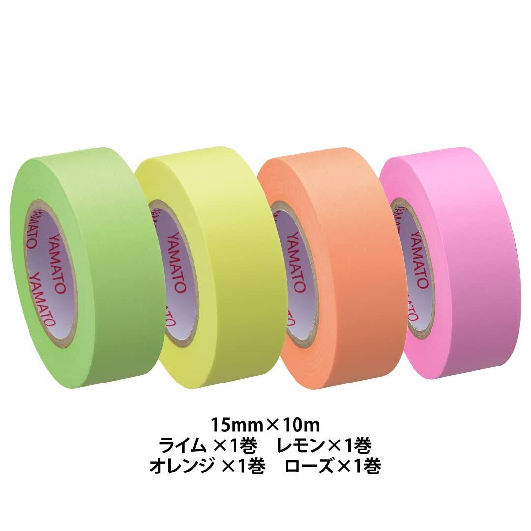 ヤマト ロールふせん ロールテープ つめかえ用 15mm幅 4巻入り 4色 ライム レモン オレンジ ローズ YRK-15-4C