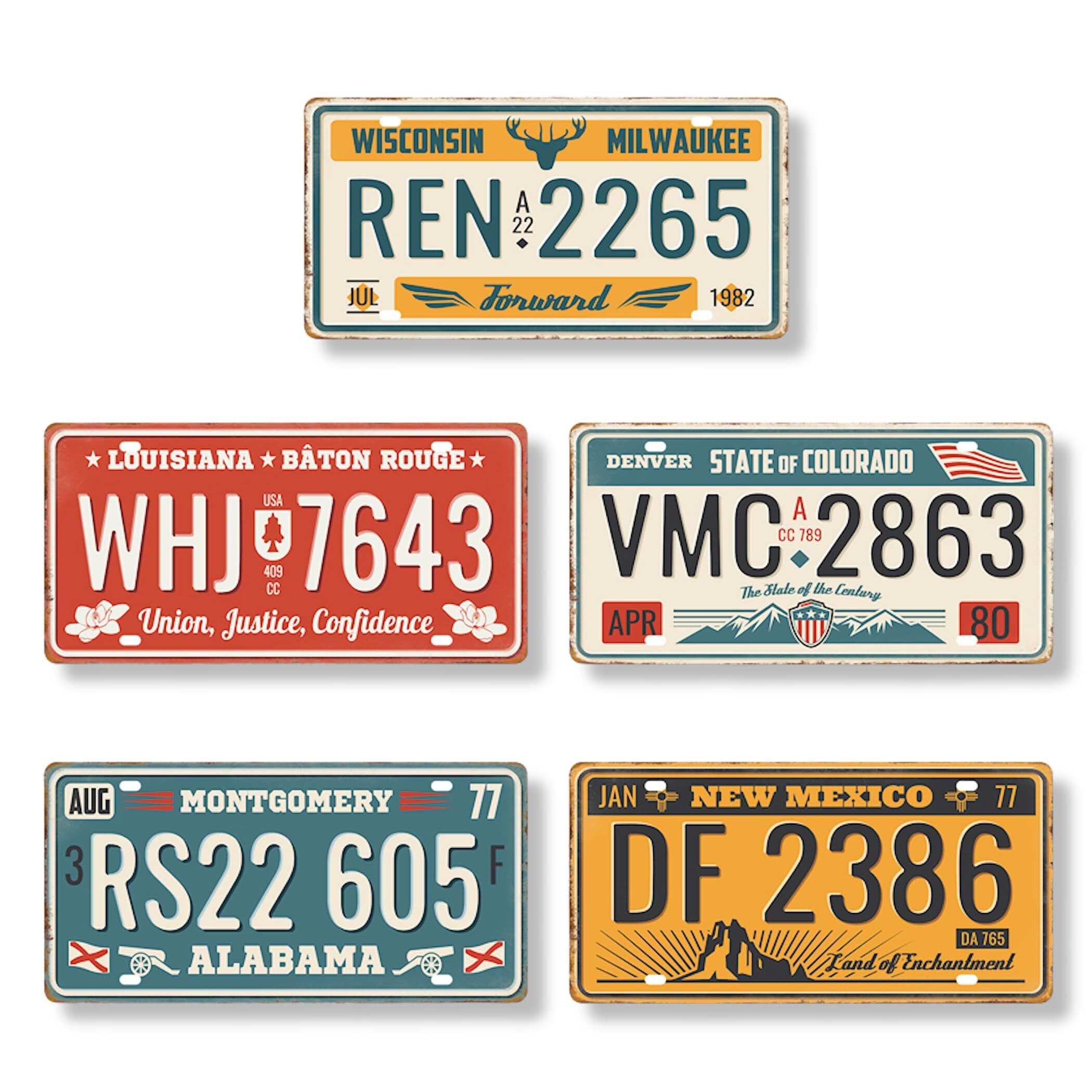 ブリキプレート : このアンティーク調のブリキプレートは、まるで昔のものを復刻したかのようなデザインで、古びた感がとてもおしゃれです。また、セットで5枚もあるため、さまざまな場所に飾ることができ、インテリアをより一層彩ることができます。