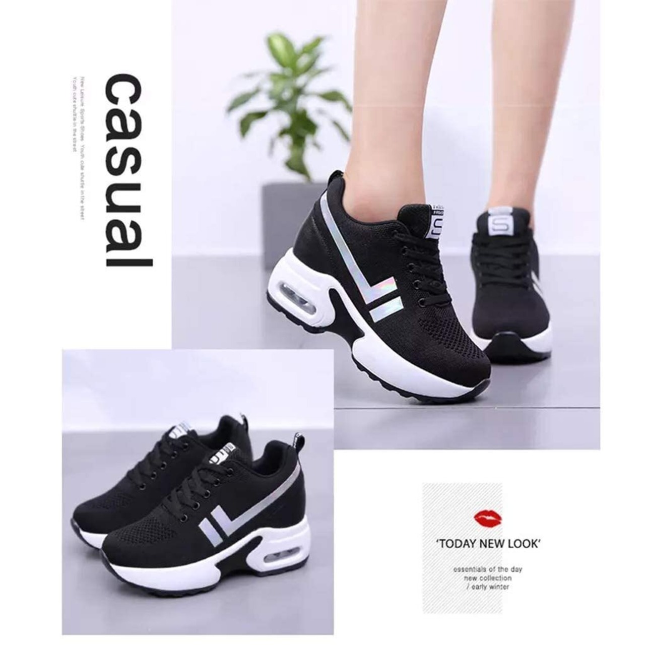 【メイン素材】アッパー:通気メッシュ 靴底:クッション。4.5 cmのインヒール+4 cmのアウトソールがあり。