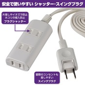●180°回転プラグ。耐トラッキングカバー付。 ●熱に強い。 ●使用していないコンセントの刃受口を封じて幼児のいたずらによる感電予防となります。 ●安全の保護被ふく