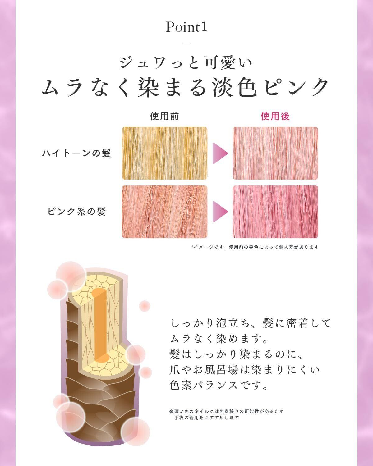 ✨【 黄ばみ・緑色を抑えて色持ちUP 】カラーキープ成分『リンゴ酸』がキューティクルを閉じ、カラーが抜けていくのを防ぎます。贅沢な泡が髪全体を包み、成分をムラなく浸透させます。