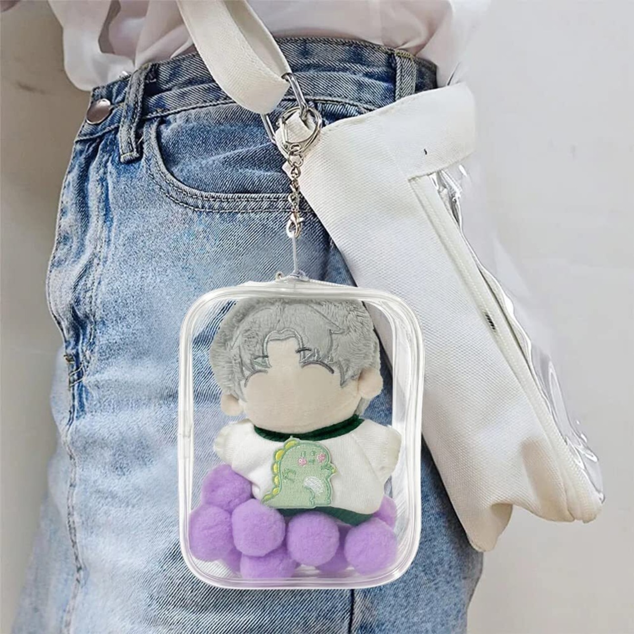 Umora ケース バッグ 痛バ 防塵 ぬいポーチ お出かけ 人形入れ 全透明 10cmぬいぐるみ用 クリアポーチ 鞄に付ける 推し リング付(スクエア)