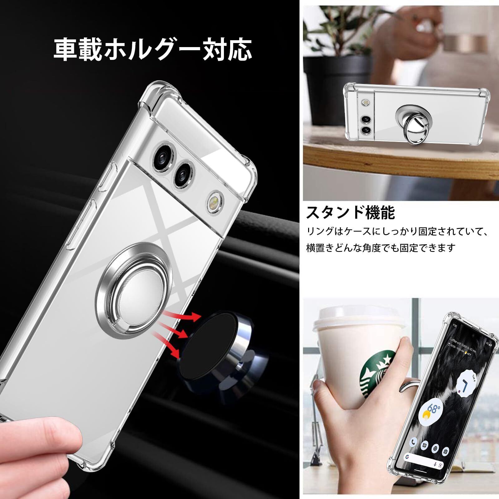 Google Pixel 8a ケース リング TPU 薄型 軽量ピクセル8a カバー シリコン 耐衝撃 指紋防止 車載ホルダー対応 防塵 一体型 人気 携帯カバー(クリア)