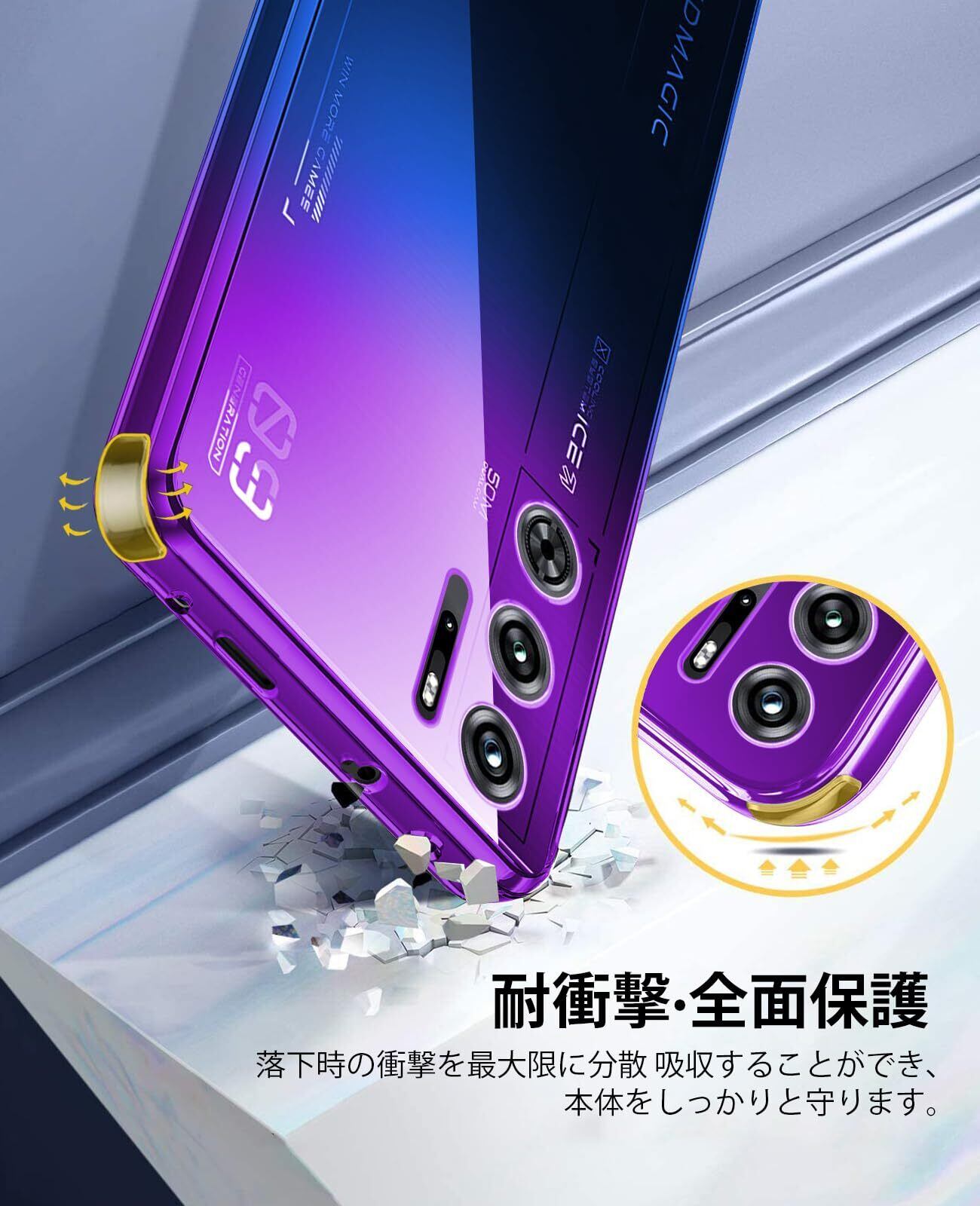 RedMagic 9 Pro ケース クリア 薄型 TPU 耐衝撃 グラデーション色 ケース 黄ばみ防止 擦り傷防止 軽量 人気 スマホケース カメラ保護 ワイヤレス充電対応 パープルブルー