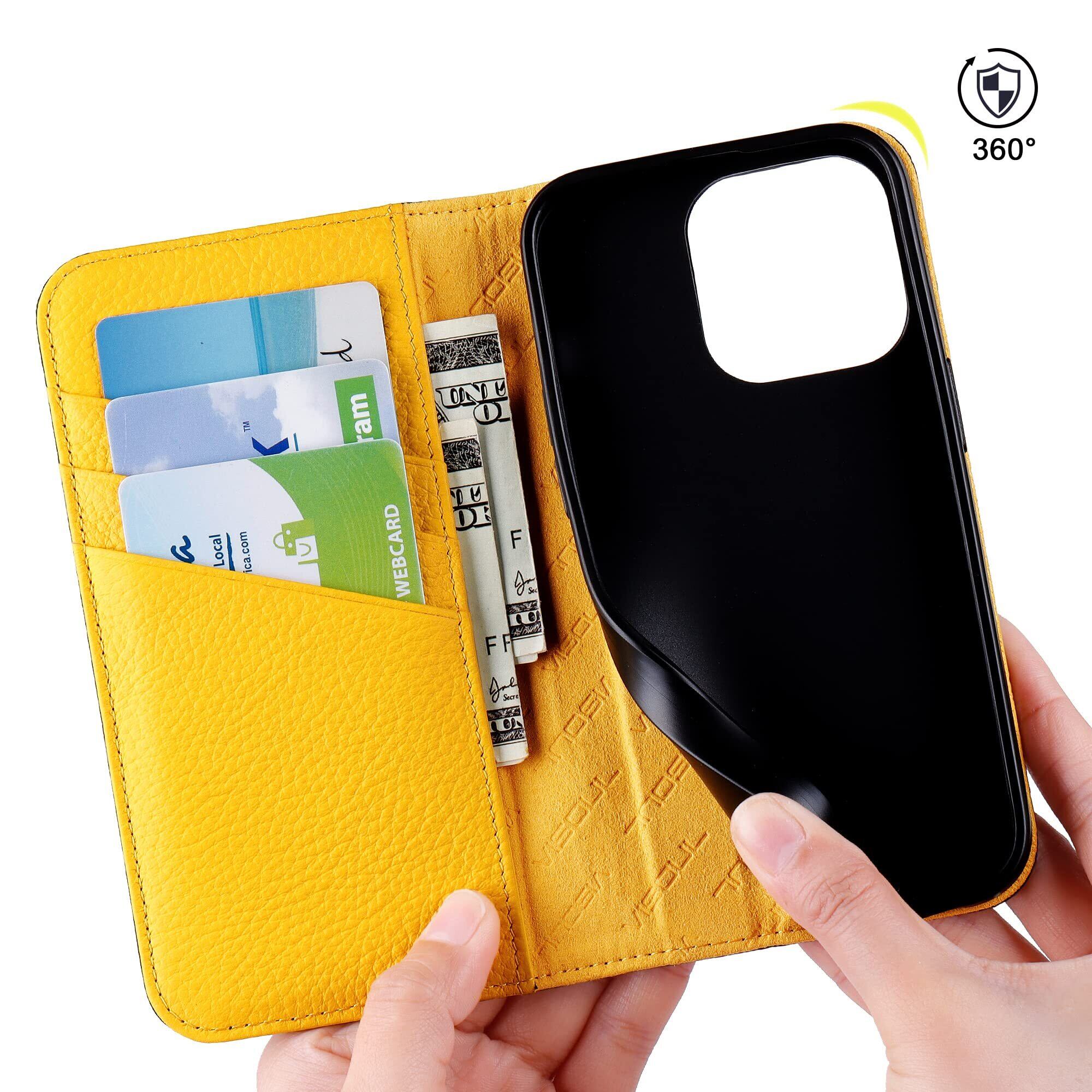 VISOUL iphone14 Pro ケース 手帳型 本革 レザー スタンド機能付き手帳型ケース カードポケット 携帯ケース 全面保護 マグネット内蔵 柔軟なTPU素材 スマホケース アイホン14 Pro 対応 6.1インチ アイフォン14 Pro ネイビー レモン