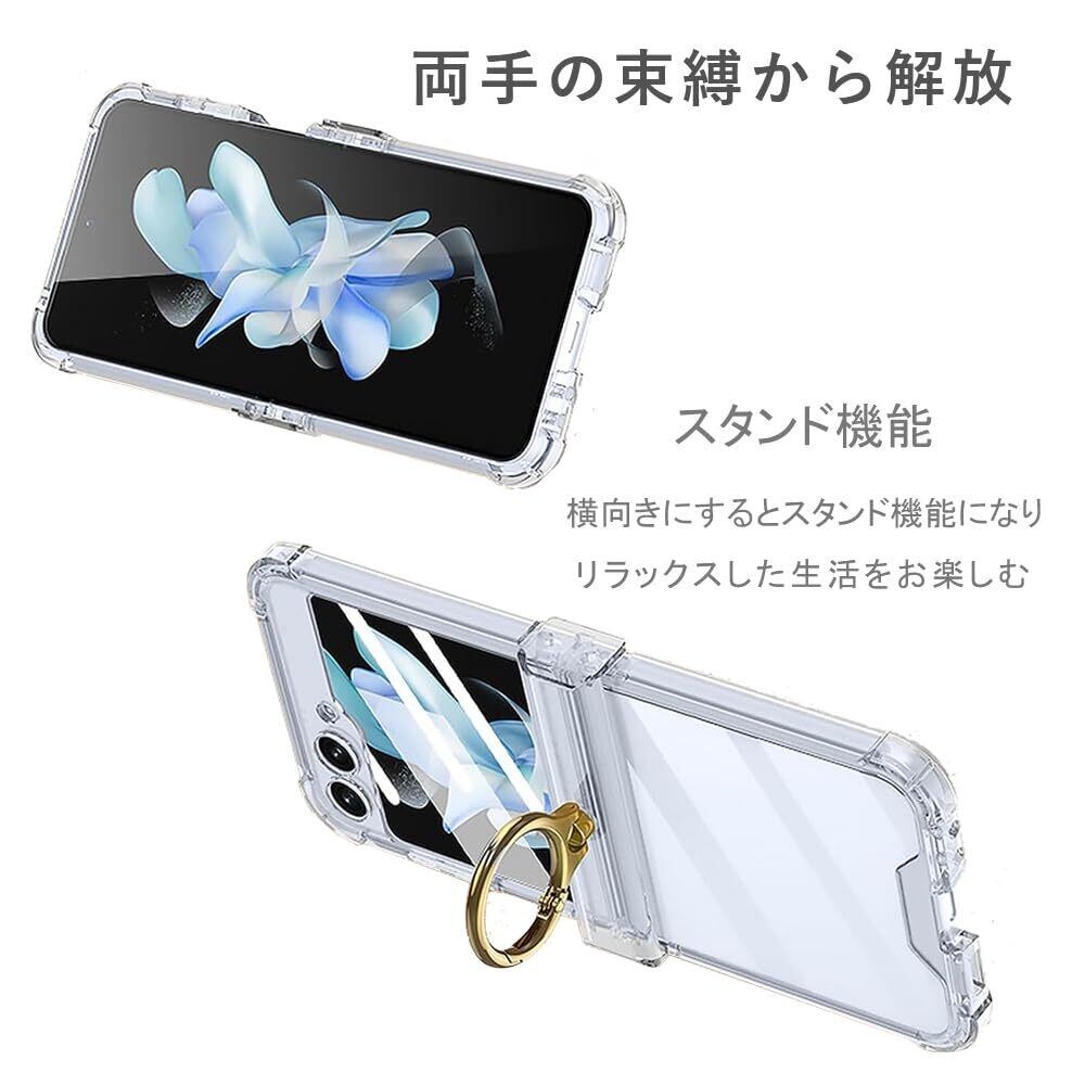 Galaxy Z Flip6 ケース クリア Samsung ギャラクシーzフリップ 6 / SC-54E 用 カバー リング付き ヒンジ保護 Uovon スマホケース 耐衝撃 スタンド機能 ストラップ穴付き 超軽量 超薄型 黄変防止 おしゃれ・クリア