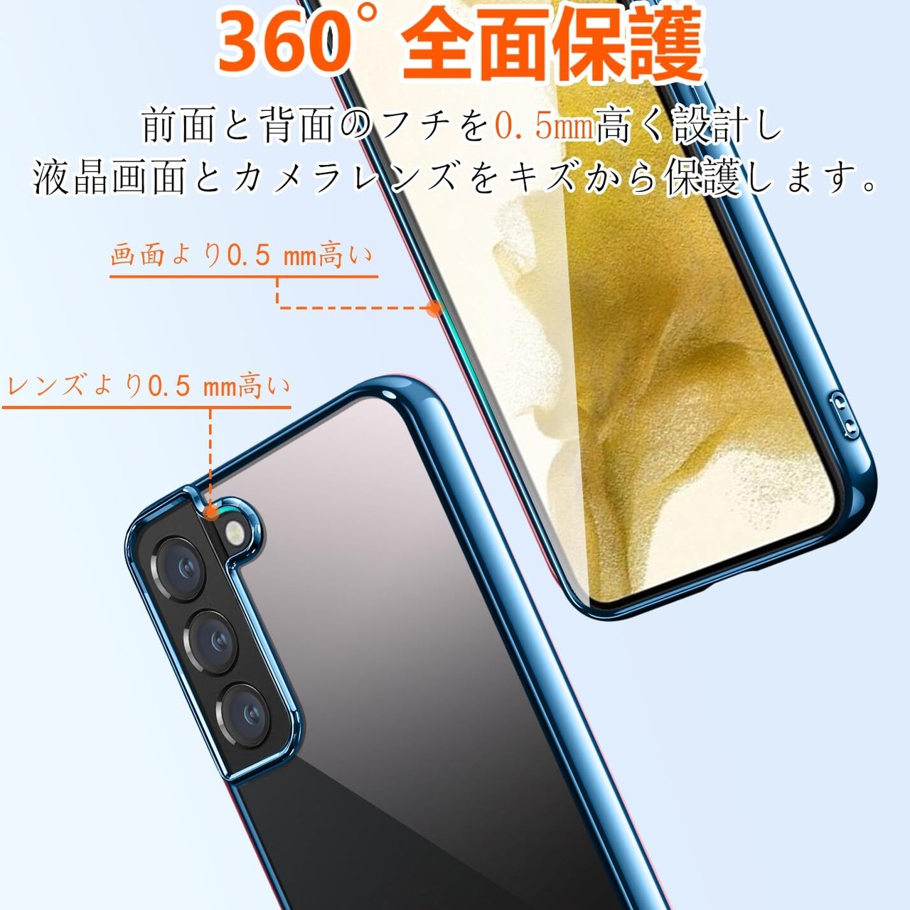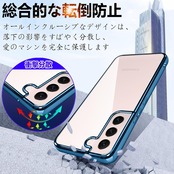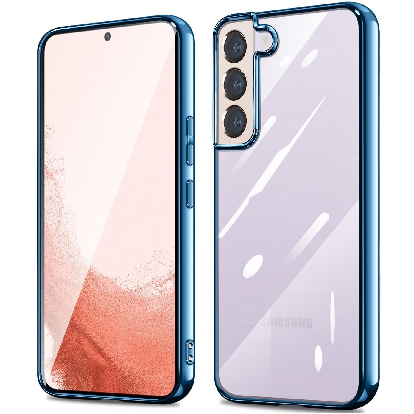 Galaxy S22 ケース クリア ギャラクシーs22 SC-51C SCG13 カバー 透明 耐衝撃 軽量 薄型 tpu 背面クリア 青縁 メッキ加工 スマホケース ソフト ストラップホール付き ワイヤレス充電対応(galaxyS22, ネイビーブルー)