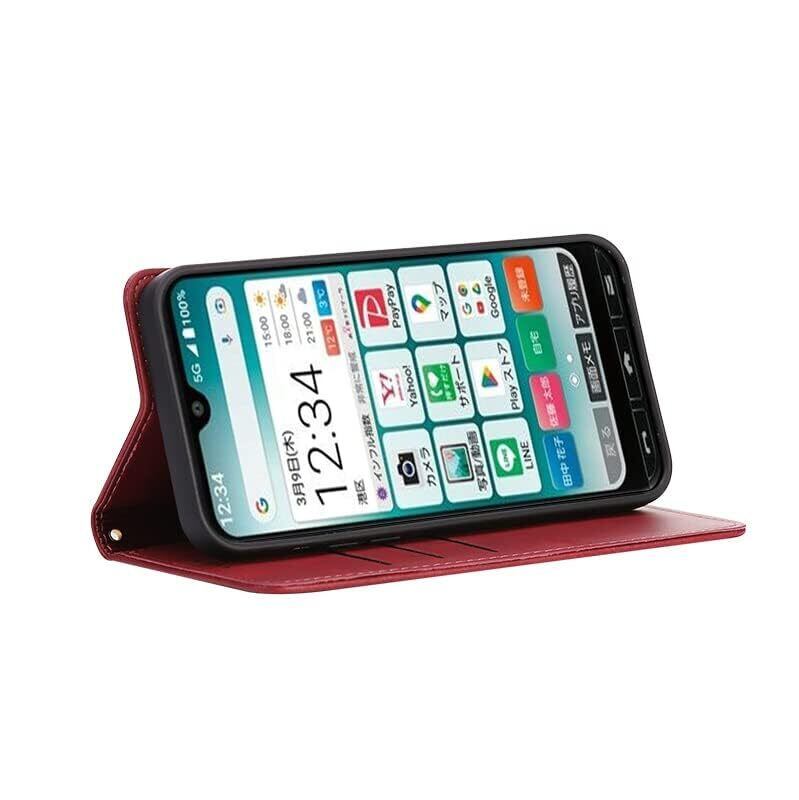 京セラ かんたんスマホ3 A205KC ケース 手帳型 カバー PUレザー カード収納 財布型 耐衝撃 ケース マグネット スタンド機能付き 5色 (京セラ かんたんスマホ3 A205KC ケース 手帳型) (レッド)